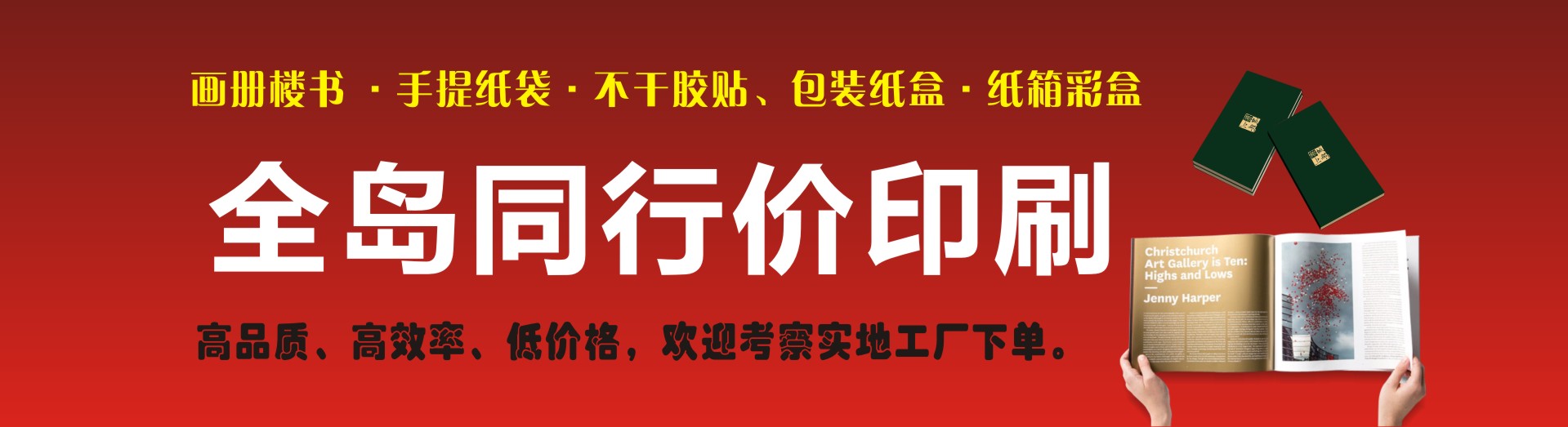 公司印刷車間實行24小時高速生產,最快可做到當日下單當日取貨,可以快捷及時地將產品送到用戶手中。省內客戶可做到早上下單,晚上物流發貨,為客戶真正做到物美價廉高效快速的產品,直接面對廣告印刷同行和客戶承接同行加工服務,以最高效率最佳品質為客戶服務,打造海南有影響力的商業快印平臺。